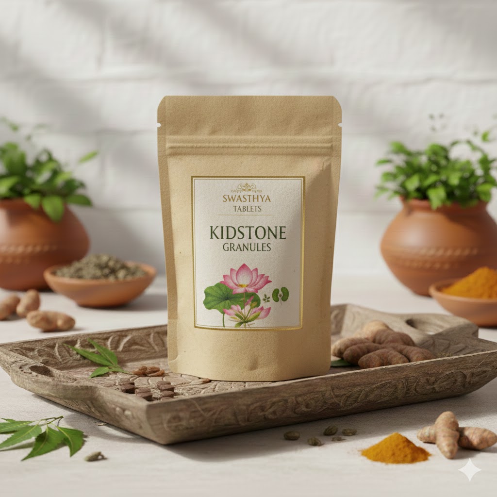 Kidstone is an Ayurvedic formula designed to dissolve and prevent the recurrence of kidney stones, while also easing associated pain and promoting detoxification.